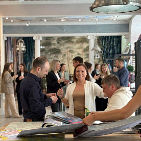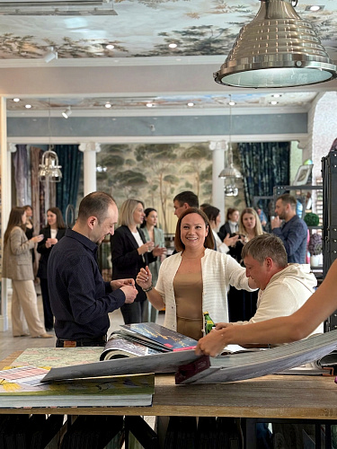 Команда Affresco работала с каждым гостем индивидуально — менеджеры подробно рассказывали о новых технологиях, материалах и рисунках, показывали, как покрытия раскрываются при разном освещении и в интерьере.